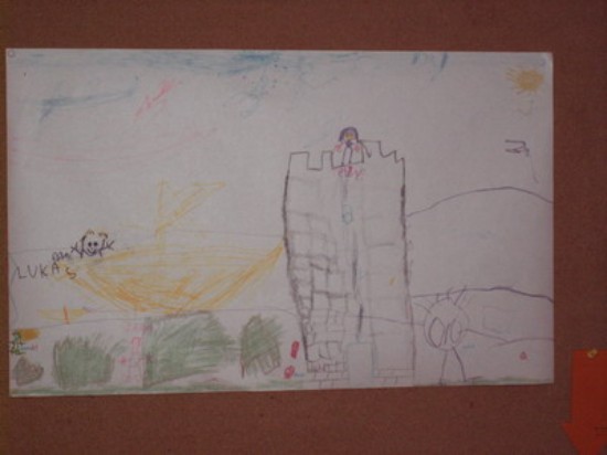 Ein Bild der Kinder des Engerser Kindergartens nach einer Führung - Dank an den Nachtwächter.